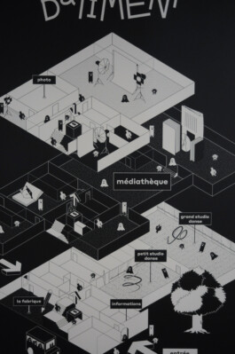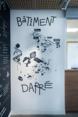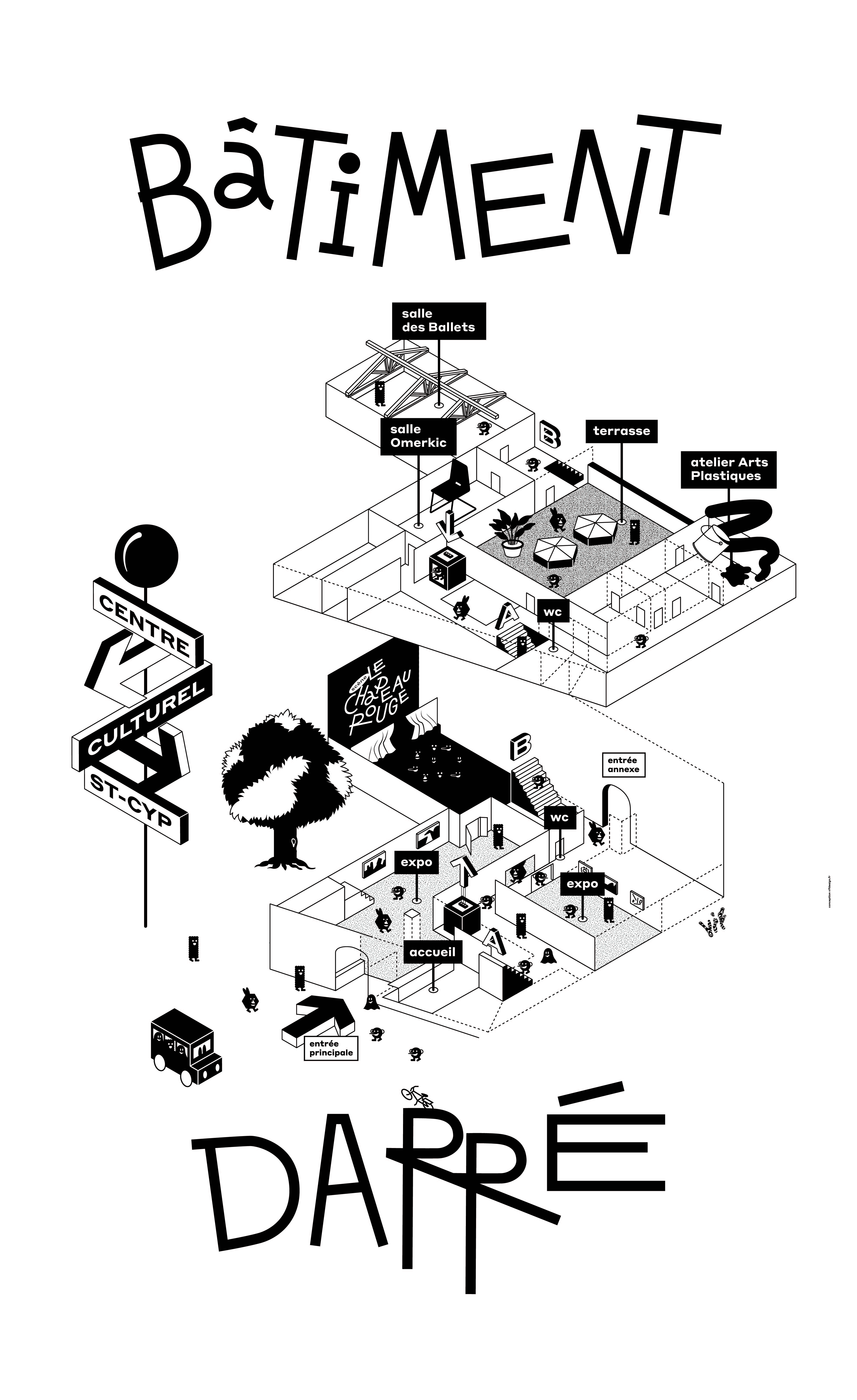 Centre culturel Saint-Cyprien, 2020, identité, Toulouse, Signalétique: logo, enseigne, directionnel, mobilier signalétique, fresque, plan illustré, affichage de programmation